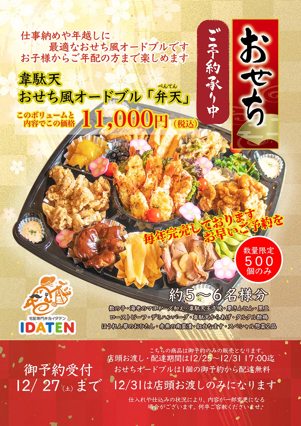 ただ今、2026年のおせち風オードブル・おせち風弁当の御予約を承り中です。