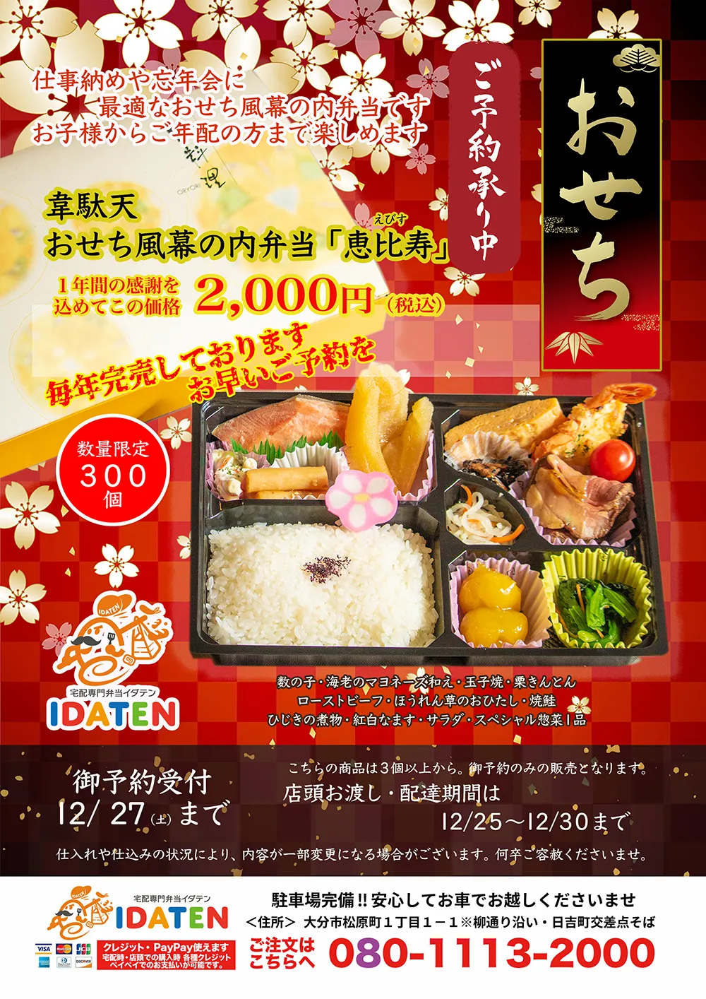 大分市の宅配専門弁当 イダテンのホームページをご覧いただき、誠にありがとうございます。