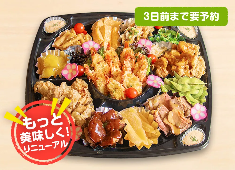 オードブル|大分市の宅配専門弁当 イダテン・お弁当の宅配(出前)はお電話一本で楽々デリバリーご注文!行楽弁当やオードブル・オフィス・会議弁当(仕出し)イベント弁当・スポーツ弁当